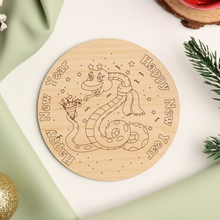 Новый год. Подставка с символом года под горячее "Змейка в шар символ годафе", диаметр - 9,5 см 1049