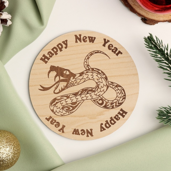 Новый год. Подставка с символом года под горячее "Змея", диаметр - 9,5 см