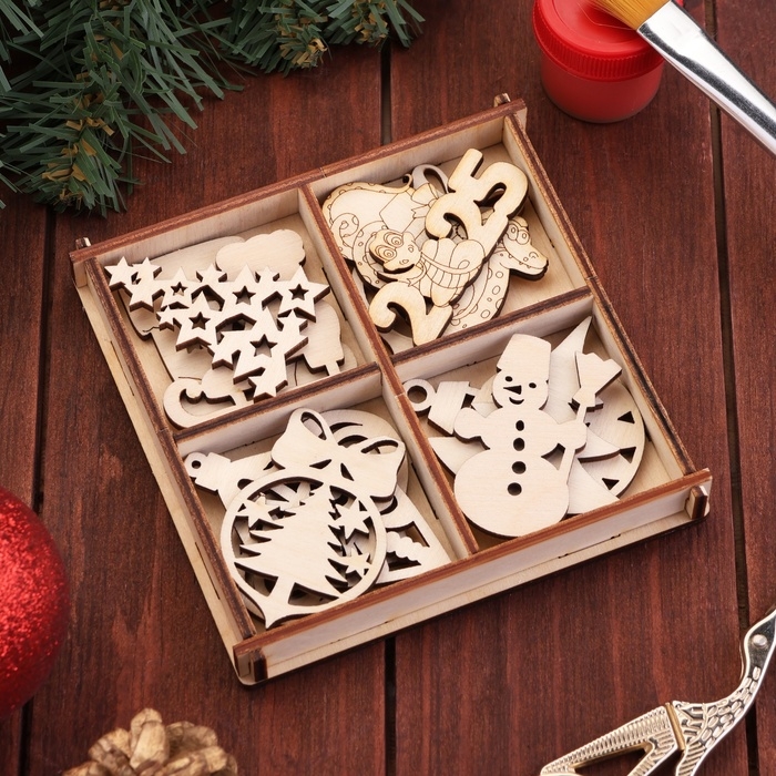 Новый год. Набор заготовок для творчества символ года "Новогодние украшения 2025",12 шт,4,5 х 4,5см