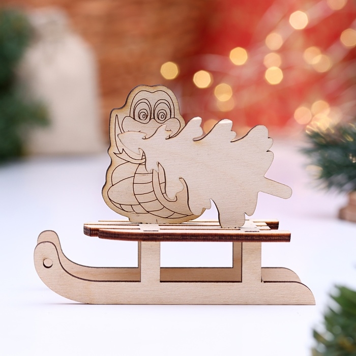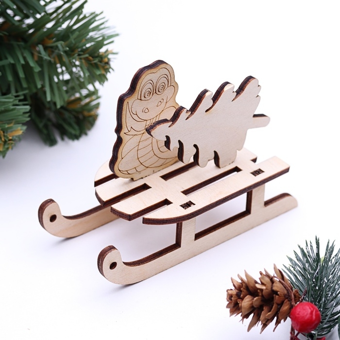 Новый год. Сувенир символ года санки "Змея с ёлочкой", вид 3, 10,5 х 4,7 х 7,8 см