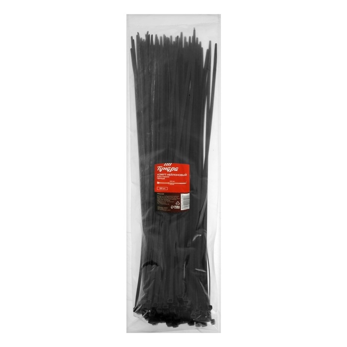 Хомут нейлоновый ТУНДРА krep для стяжки, 4.8х450 мм, черный, в упаковке 100 шт.