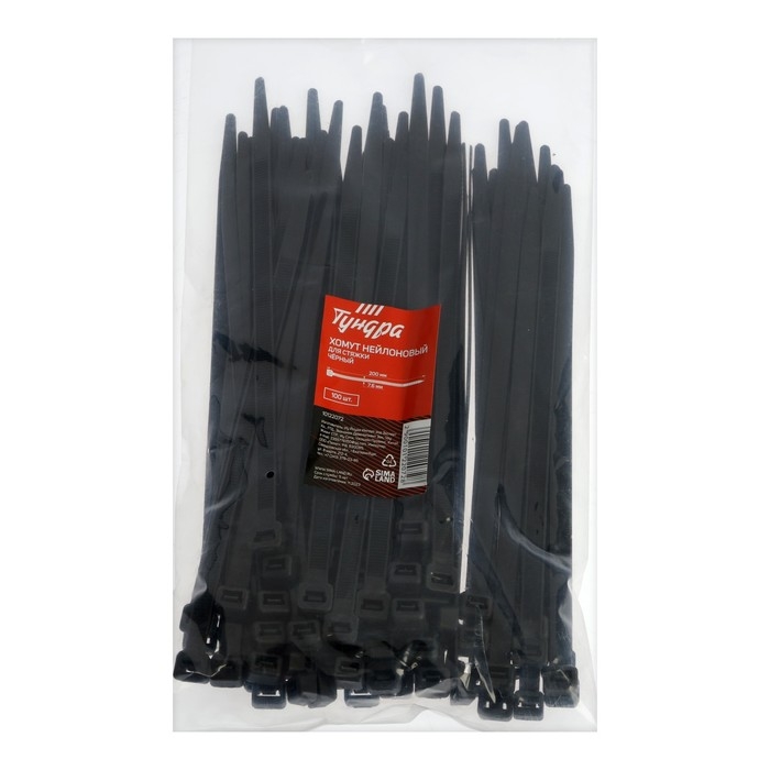 Хомут нейлоновый ТУНДРА krep для стяжки, 7.6х200 мм, черный, в упаковке 100 шт.