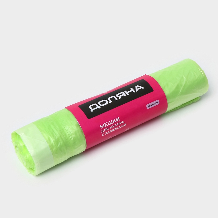 Мешки для мусора с завязками Доляна «Комфорт», 35 л, 13 мкм, 53×51 см, ПНД, 15 шт, цвет зеленый