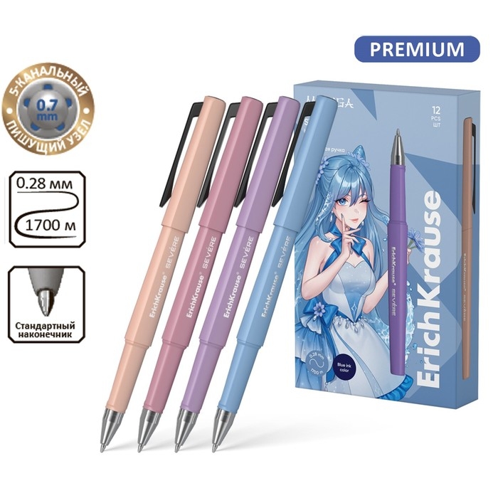 Ручка шариковая, ErichKrause, Severe Stick Manga, узел 0.7 мм, мягкое и быстрое письмо без усилий, чернила синие