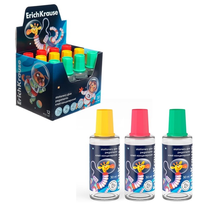 Клей канцелярский 30 мл, ErichKrause, Space Animals, микс