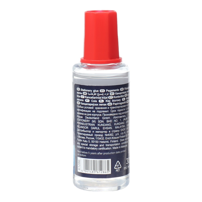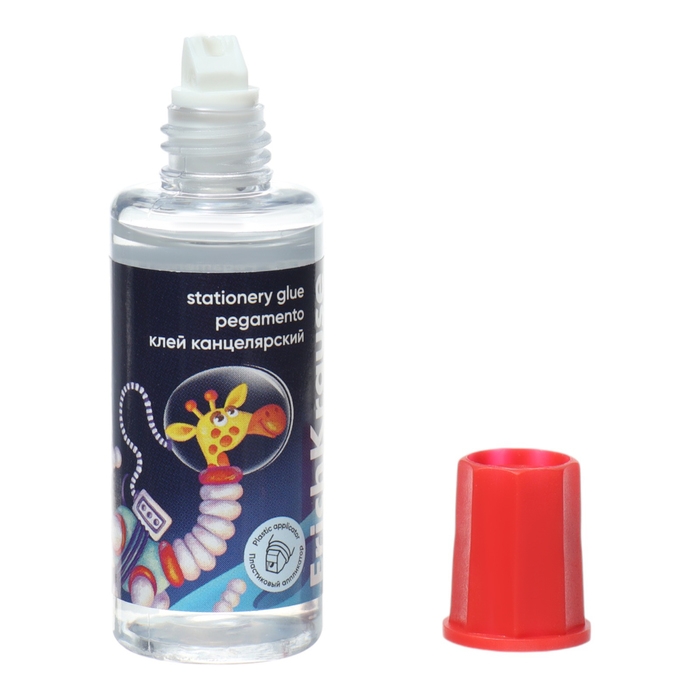 Клей канцелярский во флаконе с пластиковым аппликатором. Прозрачный. Имеет высокую клеящую способность. Пластиковый аппликатор обеспечивает равномерное нанесение и экономичный расход клея. Легко смывается водой. Не токсичен. Не содержит растворителя. Морозостоек. Подходит для бумаги, картона и ткани.