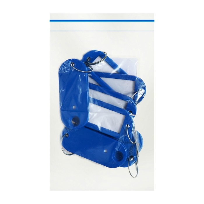 Брелоки для ключей с информационным окном и бумажной вставкой для пометок. Размер брелока 52 х 23 мм, размер окна 36 х 18мм – предназначен для нанесения маркировки. Защитная пленка размером 18 х 36 мм из прозрачного полиэтилена служит для предохранения бумажной вкладки. Материал - мягкий пластик. Упаковка по 10 штук, цвет - синий. Корпус изготовлен из гибкого пластика, что увеличивает срок службы брелока для ключей.
