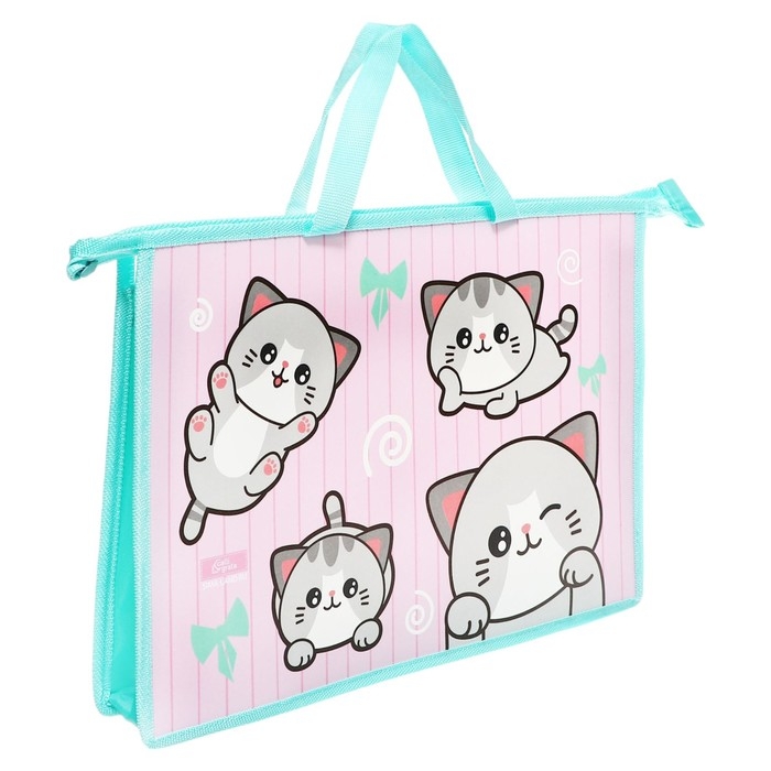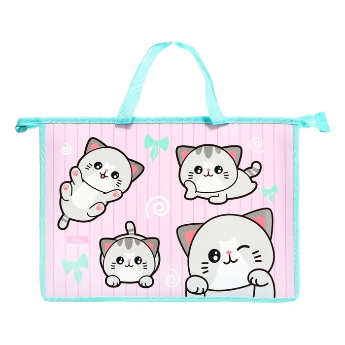 Папка с ручками А4, 335 х 235 х 55 мм, пластиковая, ручки-тесьма, Calligrata "Котики"
