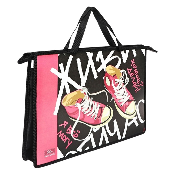 Папка с ручками А4, 335 х 235 х 55 мм, пластиковая, ручки-тесьма, Calligrata "Кеды"
