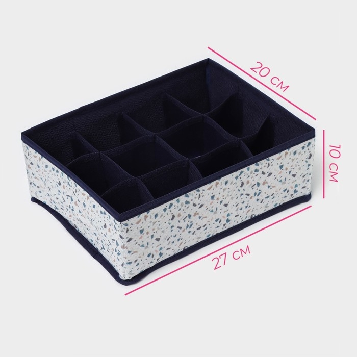 Органайзер для хранения белья Доляна «Тропики», 16 ячеек, 27×25×10 см, цвет синий