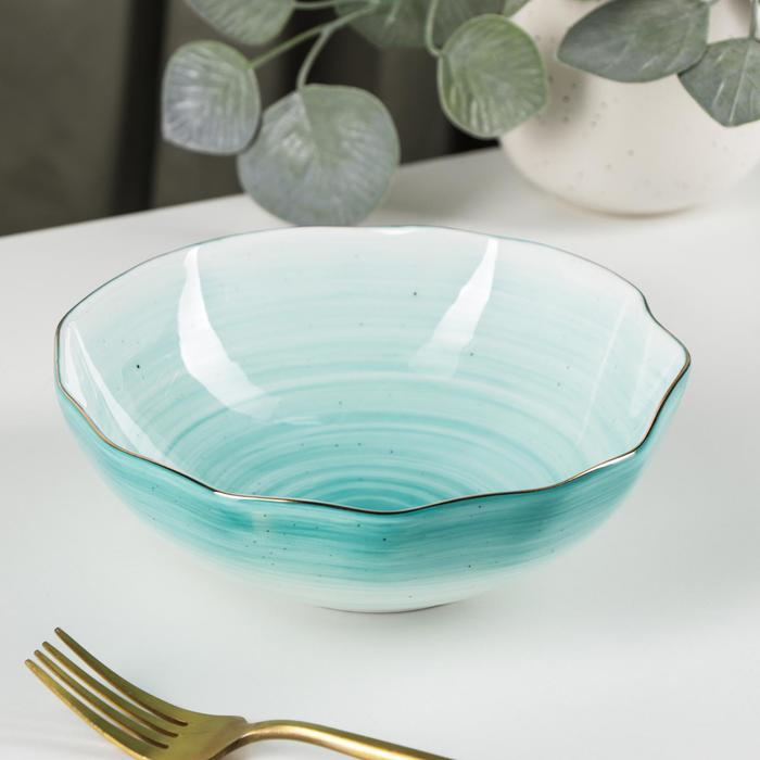 Салатник фарфоровый Доляна «Млечный путь», 700 мл, d=17,5 см, цвет бирюзовый