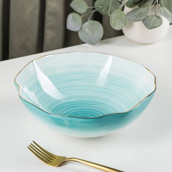 Салатник фарфоровый Доляна «Млечный путь», 1,4 л, d=22 см, цвет бирюзовый
