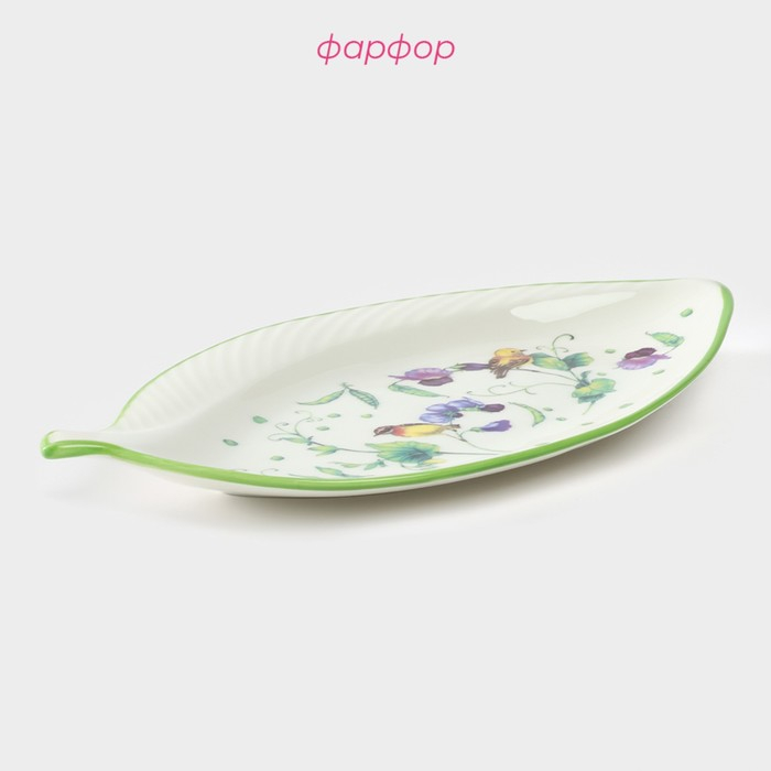 Блюдо фарфоровое Доляна «Зелёный сад», 22,5×12×1,7 см, цвет белый