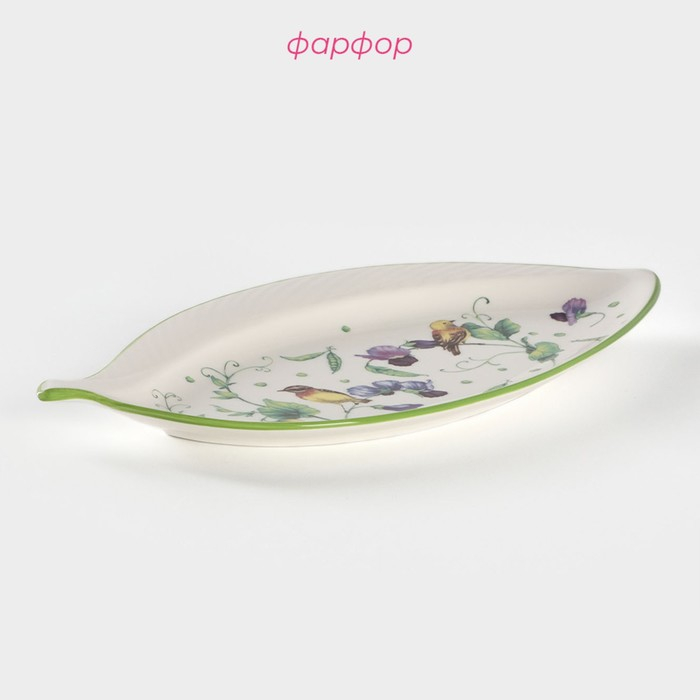 Блюдо фарфоровое Доляна «Зелёный сад», 28×14,5×2 см, цвет белый