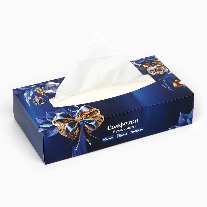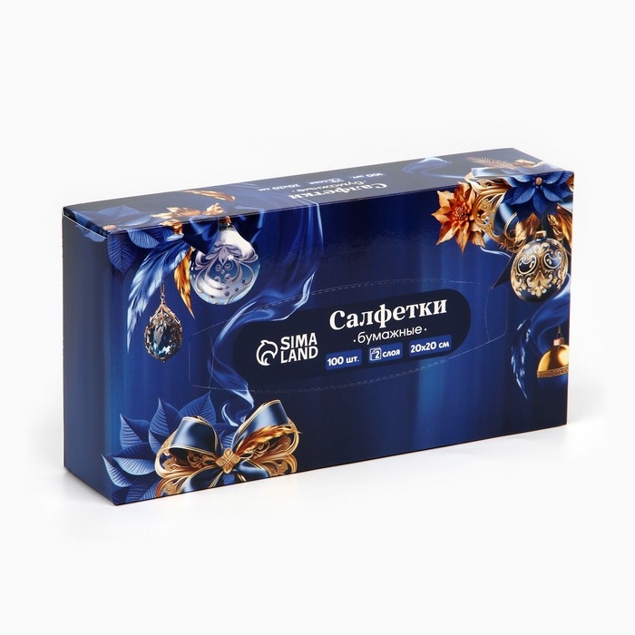 Салфетки бумажные в коробке «Новый год!», 100 шт, двухслойные