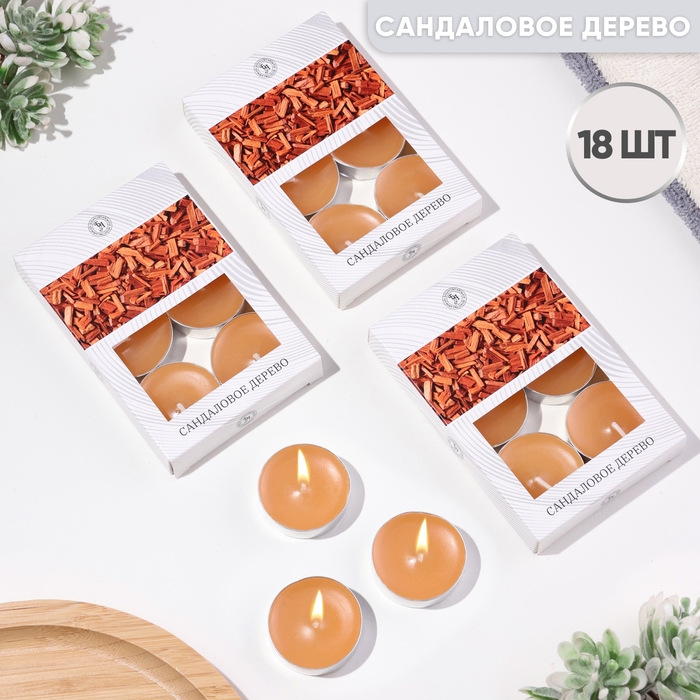 Свечи чайные ароматизированные "Сандаловое дерево" в подарочных коробках, 18 шт 1050013