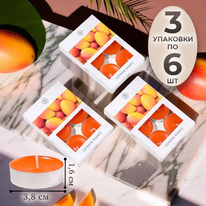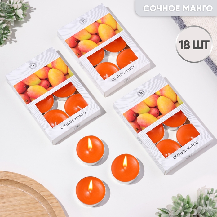 Свечи чайные ароматизированные "Сочное манго" в подарочных коробках, 18 шт