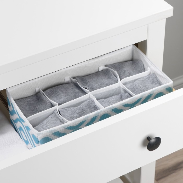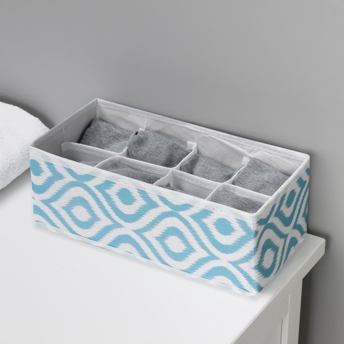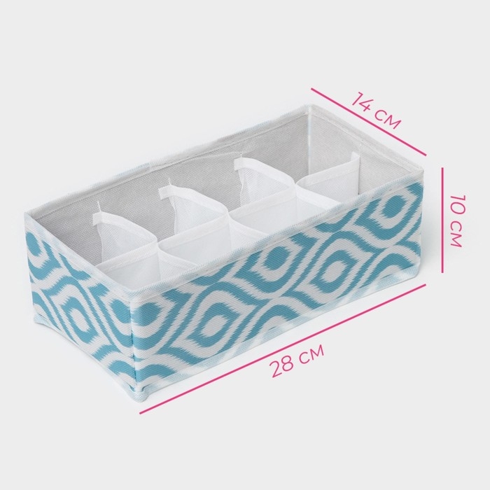Органайзер для хранения белья Доляна «Лагуна», 8 ячеек, 28×14×10 см, цвет бирюзовый