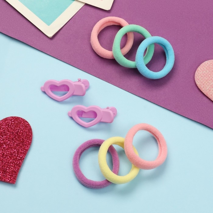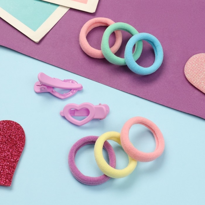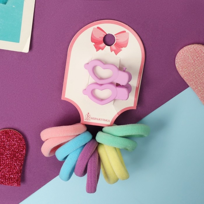 Набор для волос "Карамель" (10 резинок 3 см, 2 зажима 3 см) сердечность, сиреневый