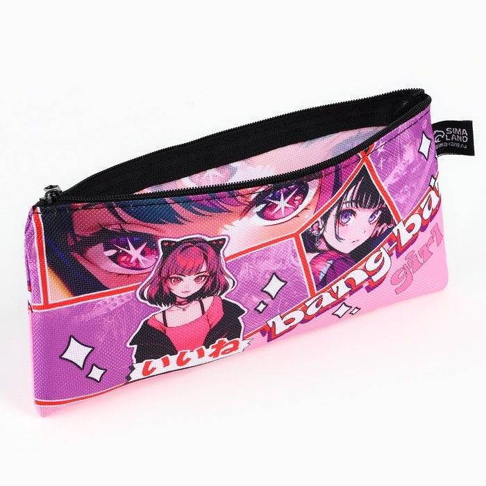 Пенал школьный текстильный «1 сентября: Grl аниме», 20 х 8 см