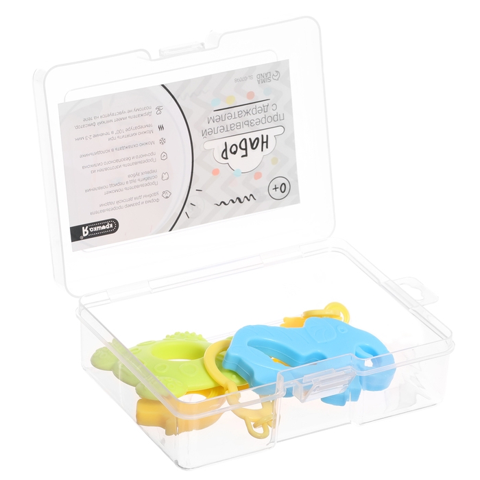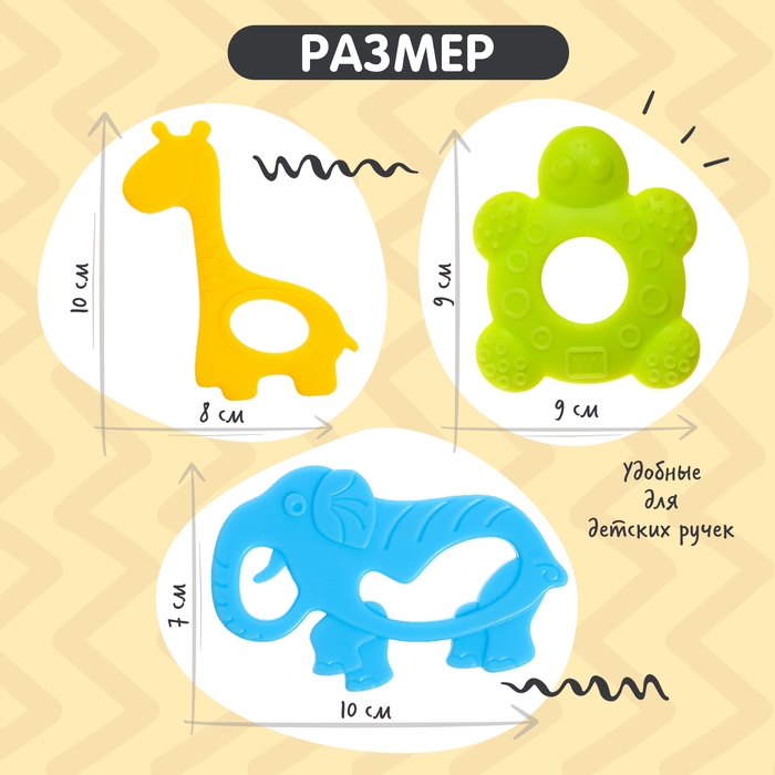 Набор прорезывателей для зубов «Зверята», с держателем, пластиковая цепочка, в контейнере, 3 шт.