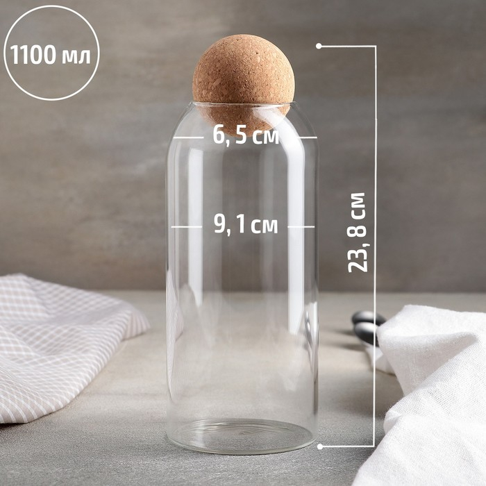 Банка стеклянная для хранения сыпучих продуктов «Эко», 1,2 л, 9,5×24 см, с пробковой крышкой