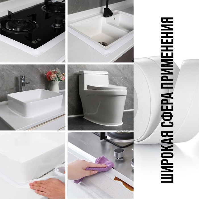 Лента бордюрная ТУНДРА, для ванны и раковины, самоклеящаяся, белая, 60 мм х 3.2 м