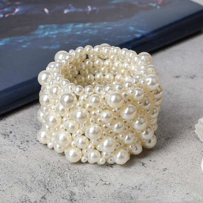 Браслет жемчуг «Зима» сплошной узор, цвет молочный, d=5 см
