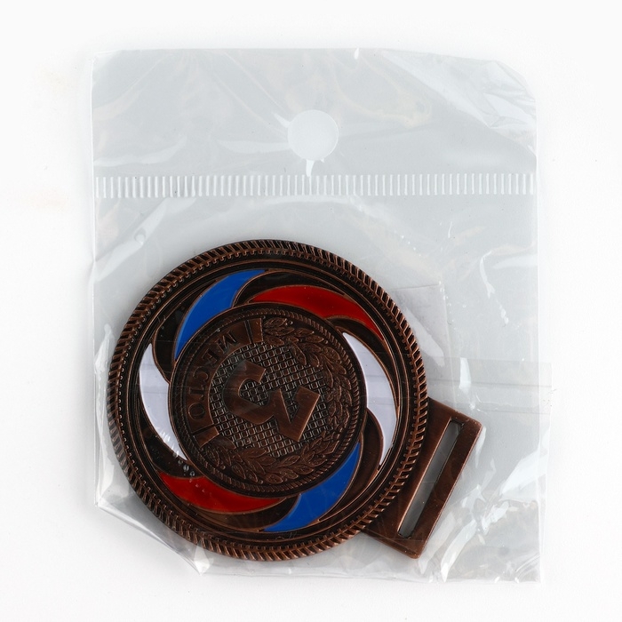 Медаль призовая 013, d= 5 см. 3 место, триколор. Цвет бронза. С лентой