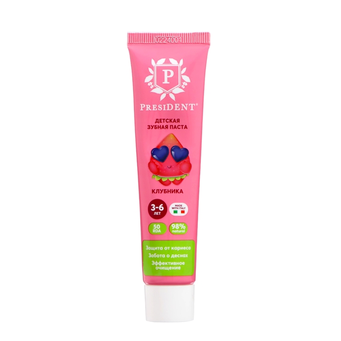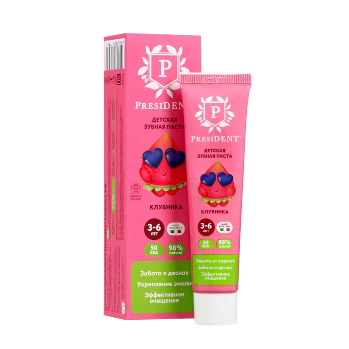 Зубная паста детская PRESIDENT 3–6 лет со вкусом клубники — идеальное решение для заботы о зубах малышей в возрасте от 3 до 6 лет. Эта паста обеспечивает бережный уход за молочными и постоянными зубами, а также укрепляет эмаль.