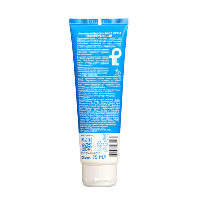 Крем для тела универсальный Pharmleve ProСинякол предназначен для ухода за кожей при синяках и ушибах. Он содержит высокоэффективную рецептуру, которая способствует восстановлению повреждённых участков кожи и ускоряет процессы регенерации. В состав крема входят экстракты бадяги и конского каштана, которые уменьшают отёчность и улучшают микроциркуляцию, а также Д-пантенол и комплекс масел авокадо, ши и льна, интенсивно питающие и смягчающие кожу, создавая защитный барьер от негативных воздействий окружающей среды.