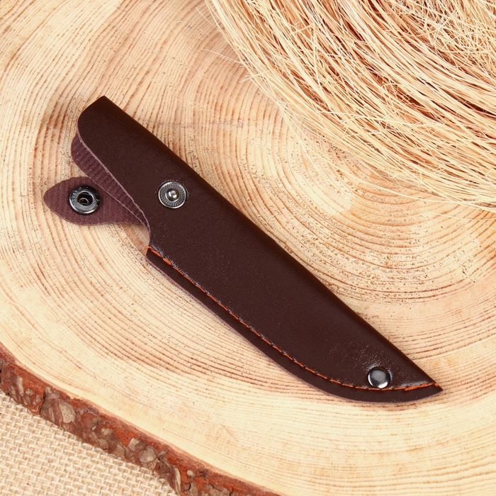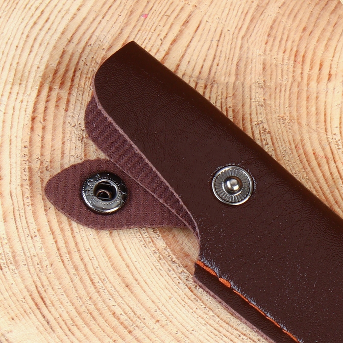 Ножны выполнены из искусственной кожи в минималистичном стиле. Чехол компактный, благодаря чему не добавляет излишнего объема и веса ножу.
