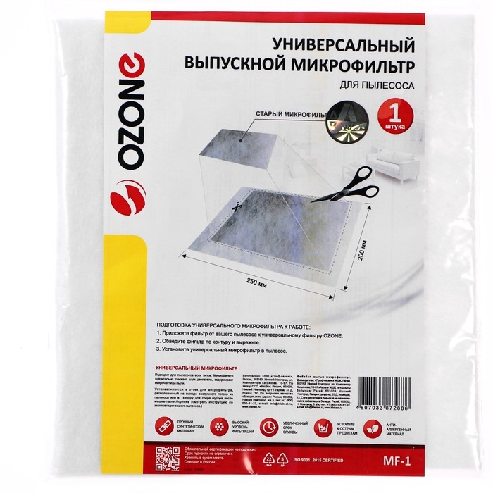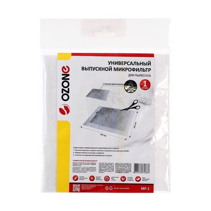 Микрофильтр универсальный MF-1 Ozone - это высококачественный синтетический выпускной микрофильтр для пылесосов. Он имеет размеры 250х200 мм и предназначен для использования в большинстве моделей пылесосов.