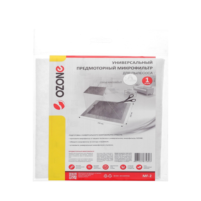 Микрофильтр MF-2 Ozone является универсальным, что означает, что он подходит для многих моделей пылесосов разных производителей. Его размеры составляют 250х200 мм, что делает его подходящим для большинства стандартных пылесосов.