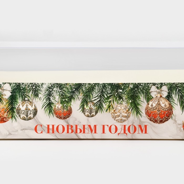Коробка для кондитерских изделий с пластиковой крышкой «Роскошь», 30 х 8 х 11 см, Новый год