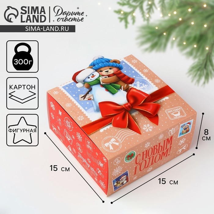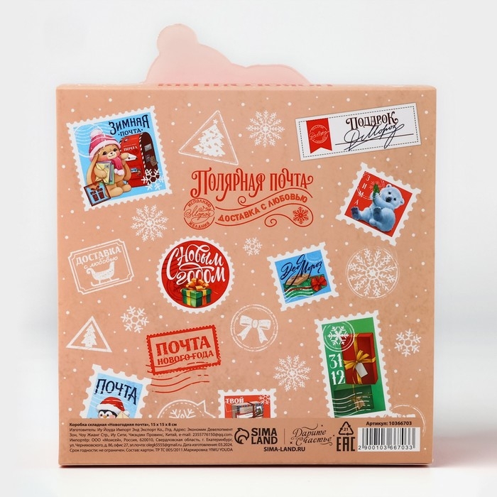 Подарочная коробка новогодняя складная «Новогодняя почта», 15 х 15 х 8 см, Новый год