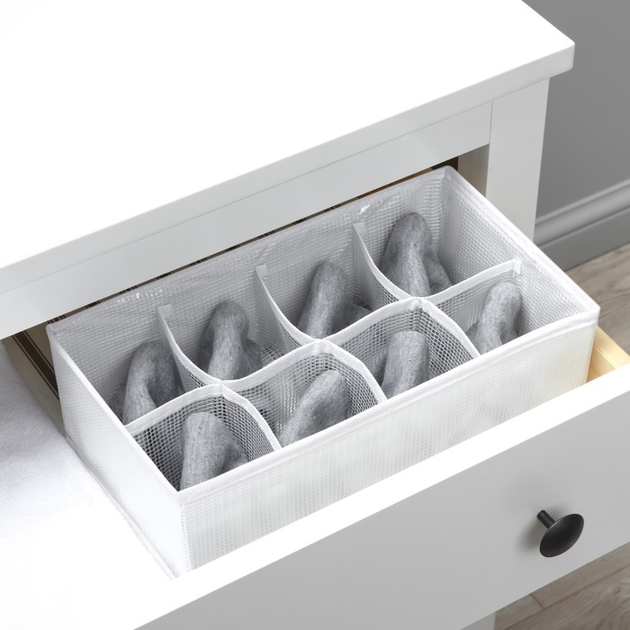 Органайзер для хранения белья LaDо́m, 8 ячеек, 28×16×10 см, цвет белый