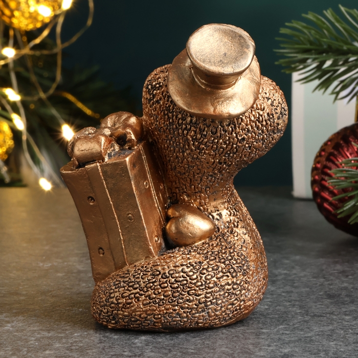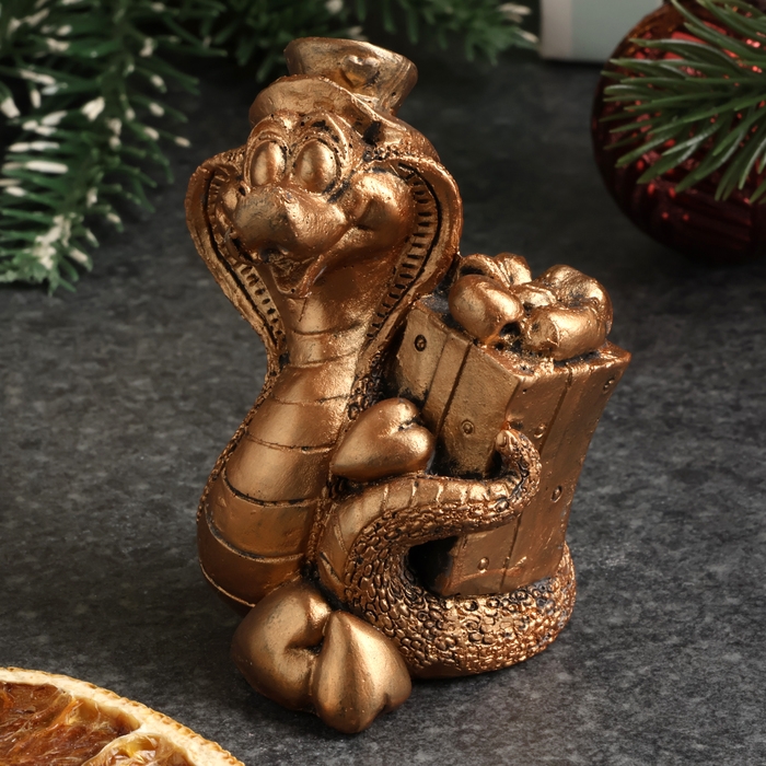 Новый год. Символ 2025. Фигура "Змея с подарком" состаренная бронза, 6х4х4см