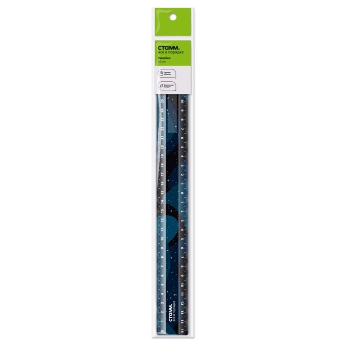 Линейка 30 см СТАММ "Космос", пластиковая, европодвес