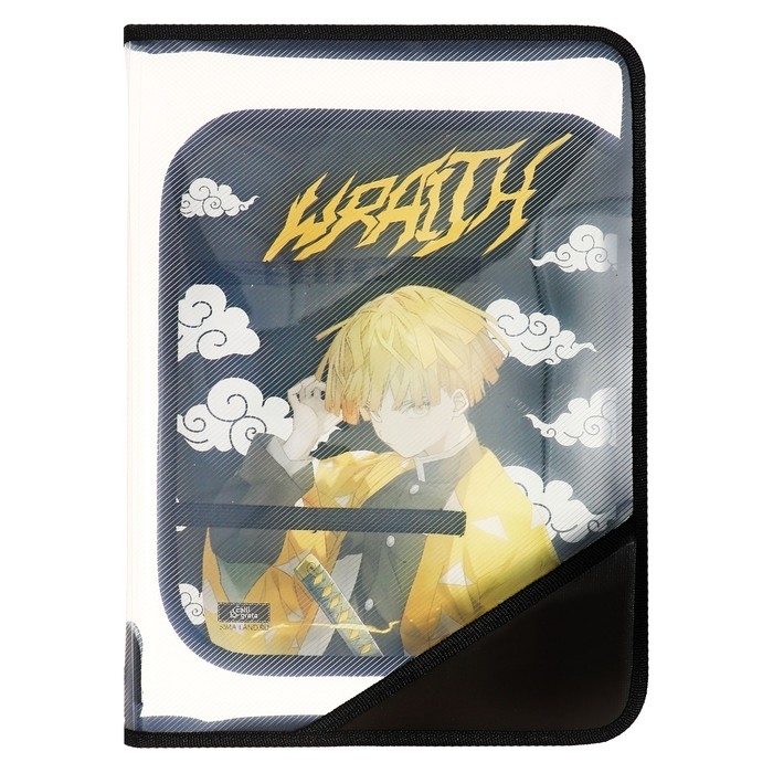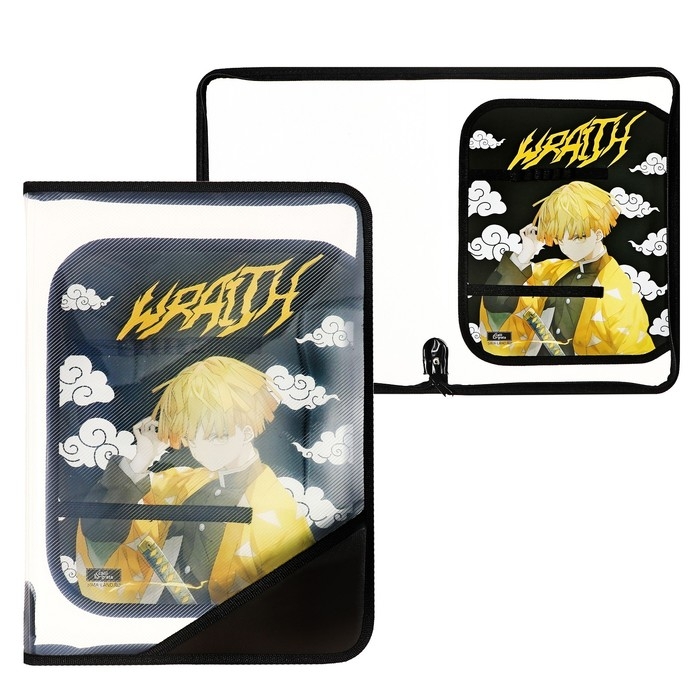 Папка для труда А4, 325 х 230 х 25 мм, молния вокруг, откидная планка, пластиковая, ПТР-1, Calligrata "Аниме клинок"