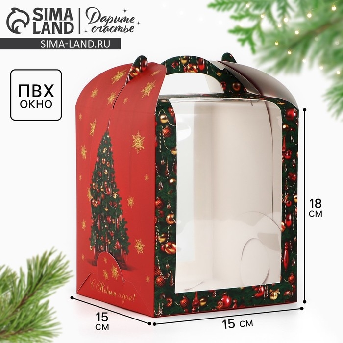 Складная коробка под маленький торт «Роскошная ёлка», 15 х 15 х 18 см, Новый год