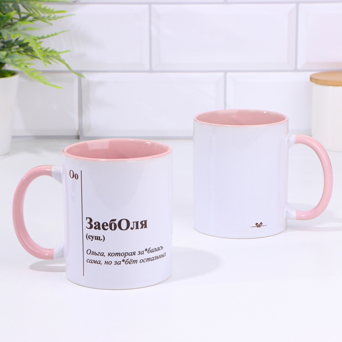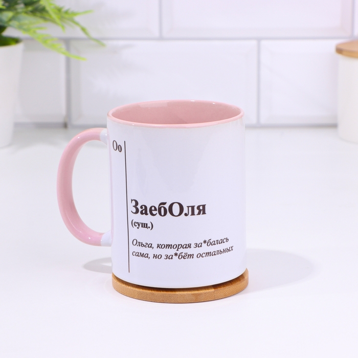 Кружка именная, сублимация "ЗаебОля", дно розового цвета