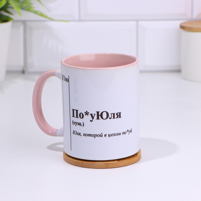 Кружка именная, сублимация "По*уЮля", дно розового цвета