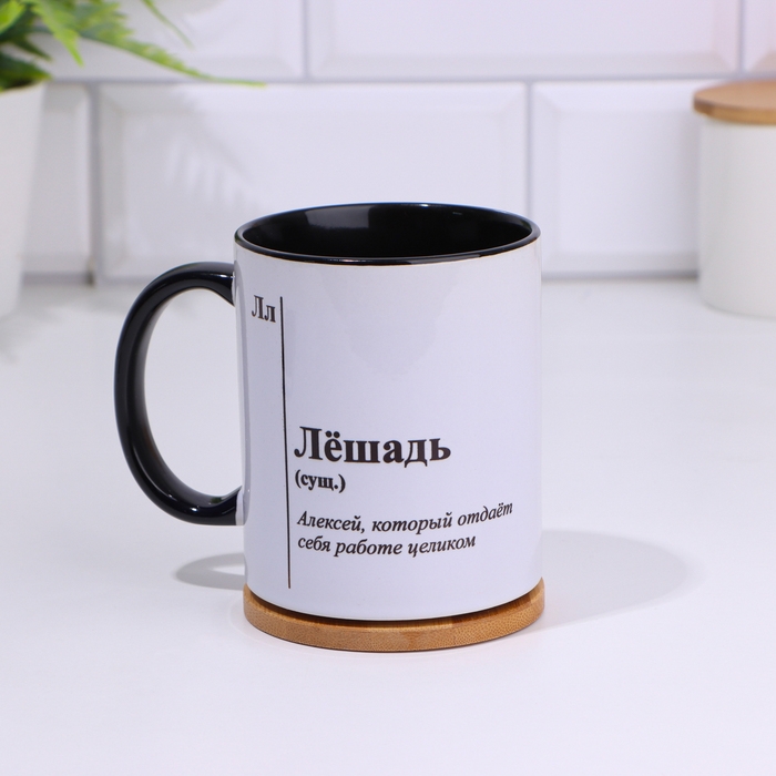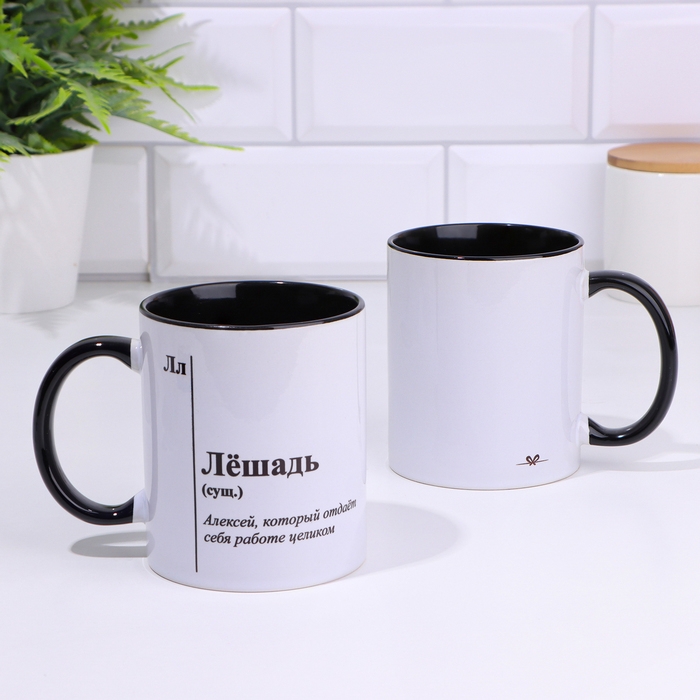Кружка именная, сублимация "Лёшадь", дно черного цвета