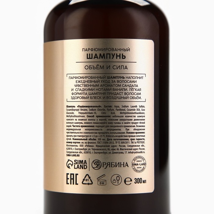 Шампунь для волос, объём и сила, 300 мл, аромат сандала и ванили, LA POETIQUE