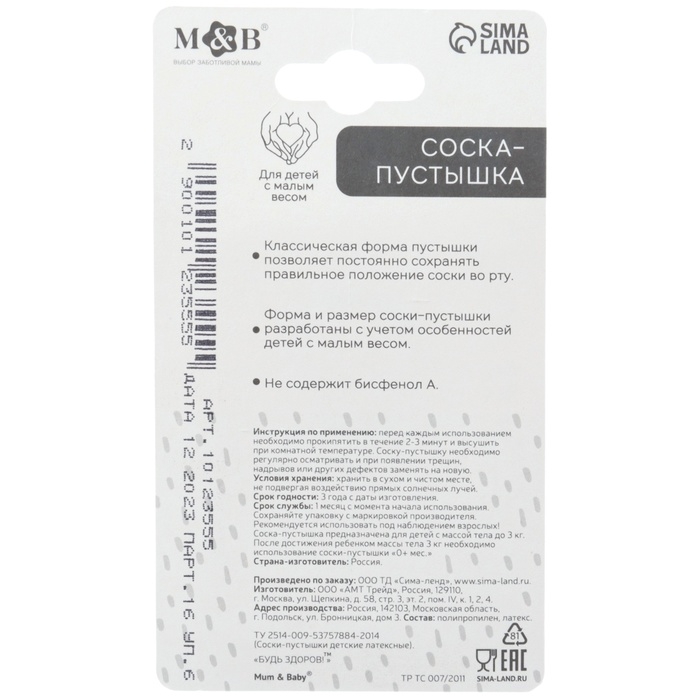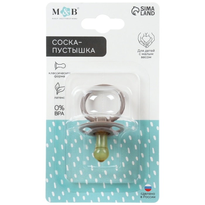 Соска - пустышка латексная классическая, от 0 мес., для детей с малым весом, цвет кофе с молоком