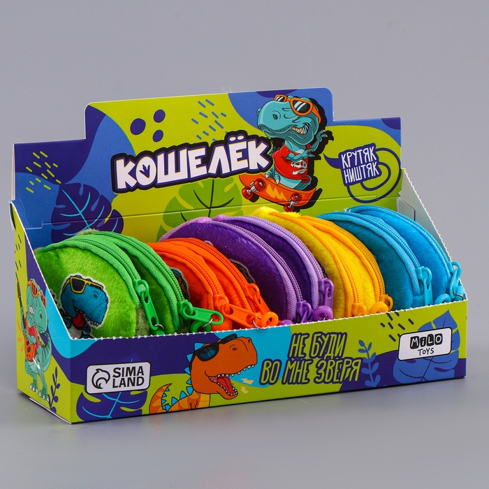 Кошелёк детский для мальчика в шоубоксе «Динозаврик», плюш, цвет МИКС