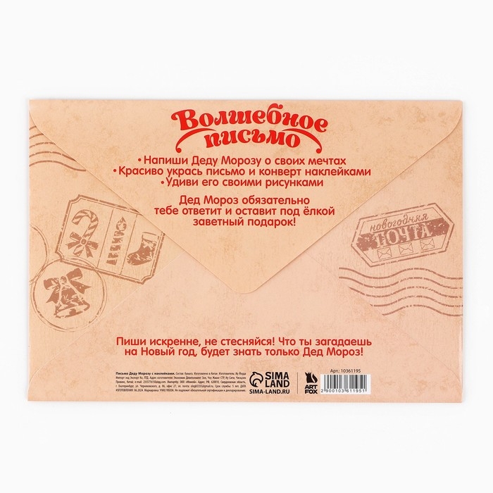 Новый год. Письмо Деду Морозу с наклейками «Приятных сюрпризов», 22 х 15,3 см