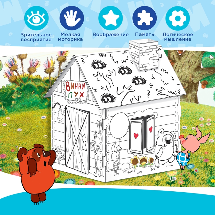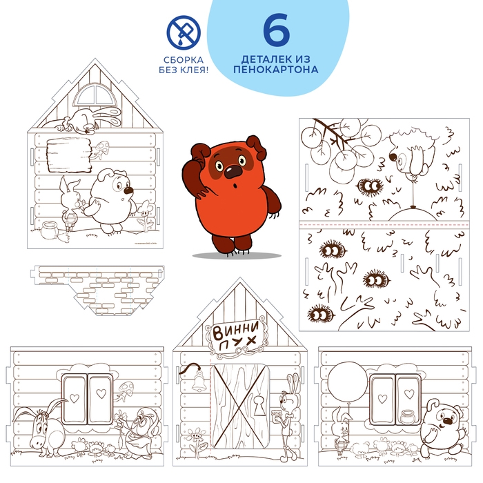 Набор для творчества «Домик-раскраска: Винни Пух», из картона, 6 деталей, 5 фломастеров