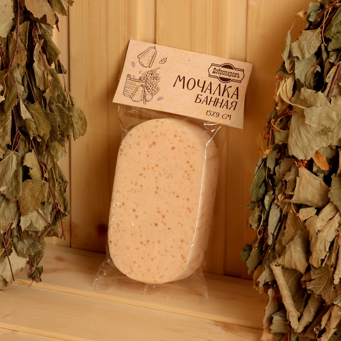 Мочалка банная 15х9 см бежевая "Добропаровъ" на подвесе